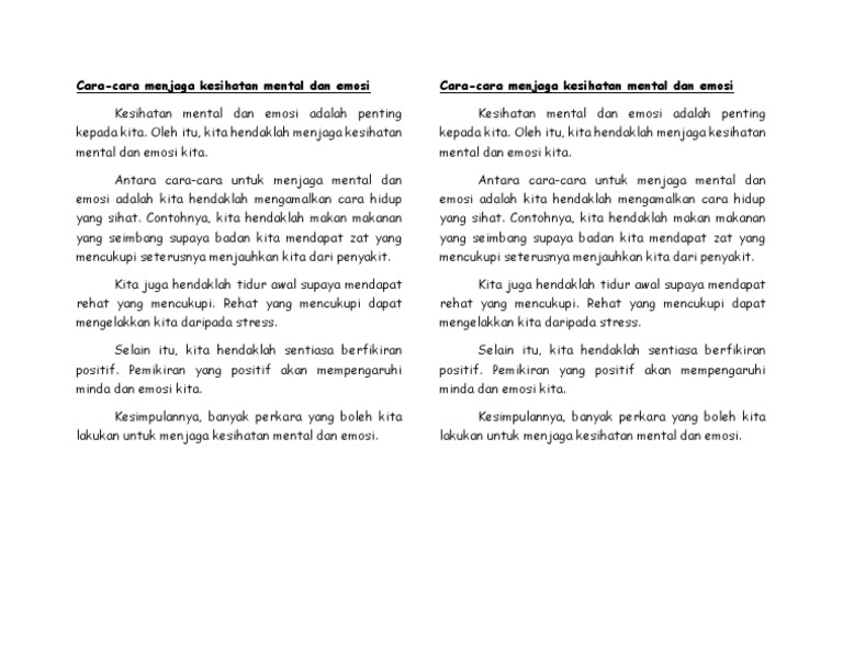 Cara Cara Menjaga Kesihaan Mental Dan Emosi Pdf