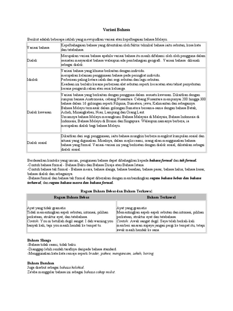 Nota N Latihan 1 Variasi Bahasa Pdf